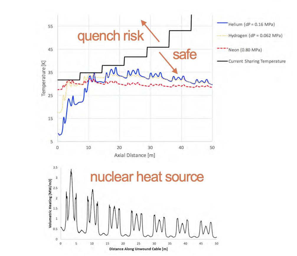 Brunner and his team modeled three of the most common cryogenic fluids (hydrogen, helium, and neon) at the temperature ranges they would experience in SPARC and then looked at the output of their thermal simulations. From this data, Brunner and his team were able to explore the tradeoffs of the different types of cooling systems they could use without ever exposing any superconductors or other materials to needless risk.